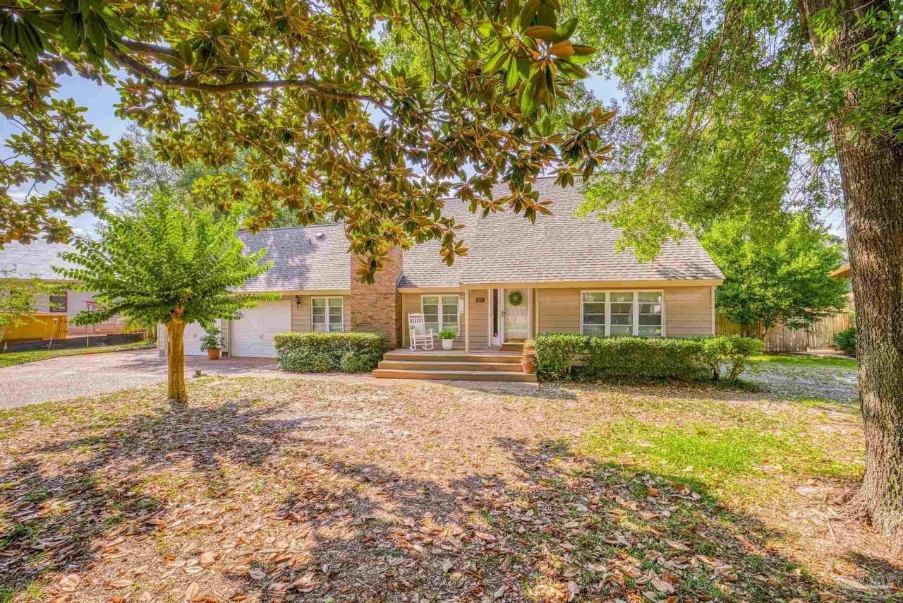 Nestled in the sought-after Gulf Breeze Park neighborhood, this quaint home is perfectly situated on a peaceful cul-de-sac, directly behind local schools. Enjoy the unparalleled convenience of walking to school, the recreation center, ball fields, library, and the beautiful Santa Rosa Sound. This charming mid-century modern residence boasts 4 bedrooms, 3 baths, and a sparkling pool, creating the perfect sanctuary for your family. The property is adorned with mature landscaping and shade trees, providing a serene and picturesque setting. The spacious backyard is an entertainer's delight, complete with a deck and pergolaâ??ideal for hosting...read more